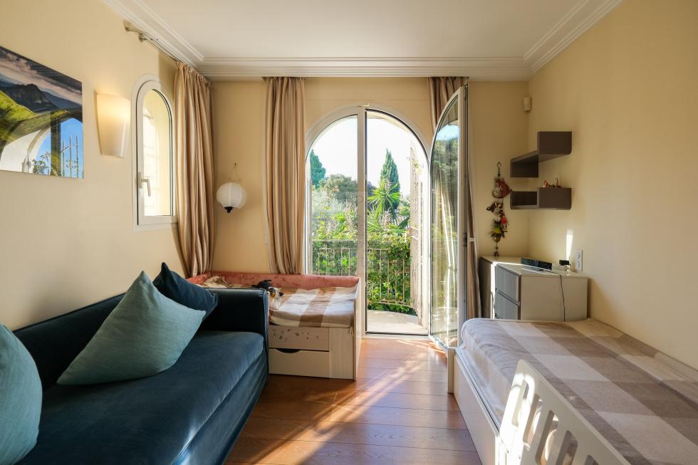 Cap d'Antibes, à 4 minutes des plages et au calme absolu, cette élégante maison des années 30 offre de beaux volumes et un jardin magnifique. Située dans le domaine sécurisé du parc Saramartel, dans une impasse, la villa d'environ 247 m2 comprend 3 niveaux. L'accès se fait par un portail électrique, un chemin pavé mène à un garage de 25m2 et au car-port, on peut également entrer en tant que piéton par un portail et une allée qui mène au perron. Le jardin est une merveille, très bien entretenu avec de multiples espaces de détente, des essences méditerrannéennes et exotiques, une jolie fontaine et des treilles. L'étage principal est dédié aux pièces de réception. Le perron dessert un petit vestibule, puis un vaste séjour lumineux avec une belle hauteur sous plafond, une salle à manger prolongée par une grande terrasse et sa treille, une grande cuisine séparée et un WC invité. Au 1er étage, 2 chambres en suite, avec chacune son balcon et sa grande salle de bains. En rez-de-jardin: 2 chambres, une cuisine, une salle de bains, une buanderie et de nombreux rangements. L'espace piscine est très convivial: grande piscine de 15mX6 en mosaique, un espace salle de sports et un salon d'été avec sa pergola. Une immense cuisine d'été, complètement équipée et couverte, permet de recevoir une douzaine de personnes. Prestations: arrosage automatique, climatisation, alarme, portail électrique. En résumé, une propriété de charme avec un magnifique jardin, au calme absolu et à quelques minutes de Juan les Pins.