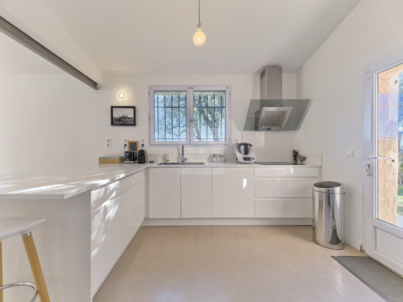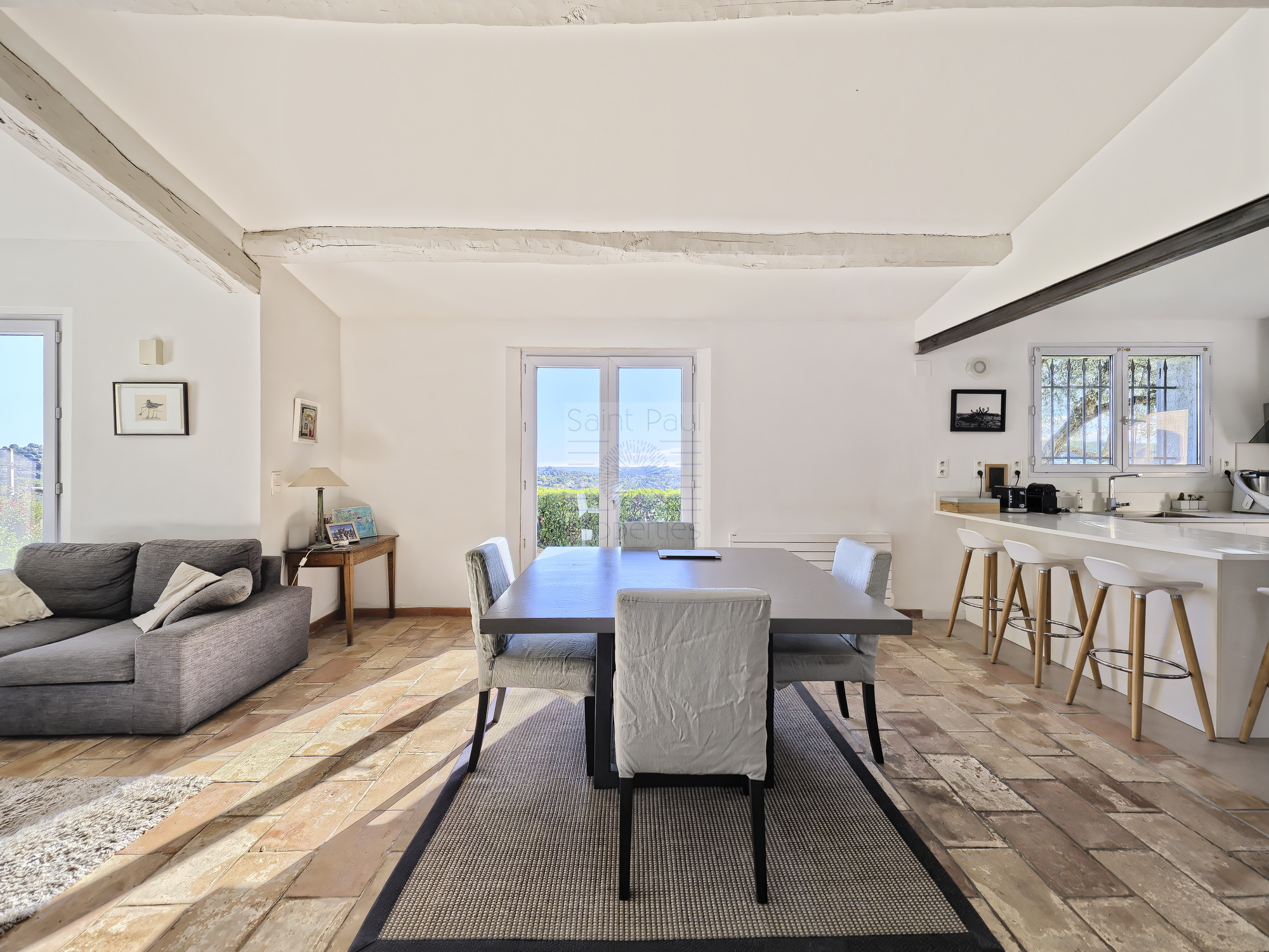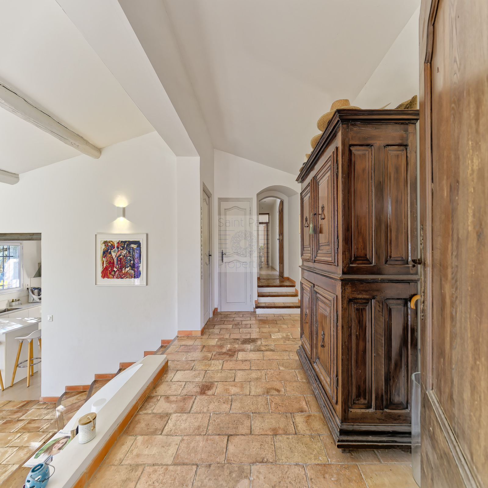 Une belle entrée desservant un spacieux séjour avec belle hauteur sous plafond, une cuisine américaine parfaitement équipée, l'ensemble idéalement ensoleillé ouvrant sur les extérieurs, dont une agréable terrasse ombragée, lieu idéal de convivialité.