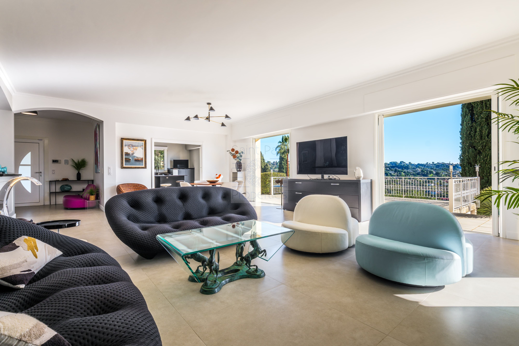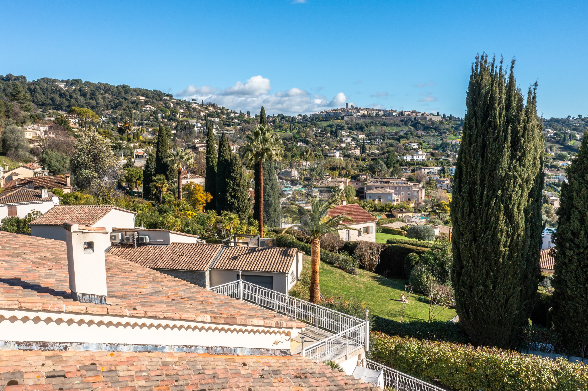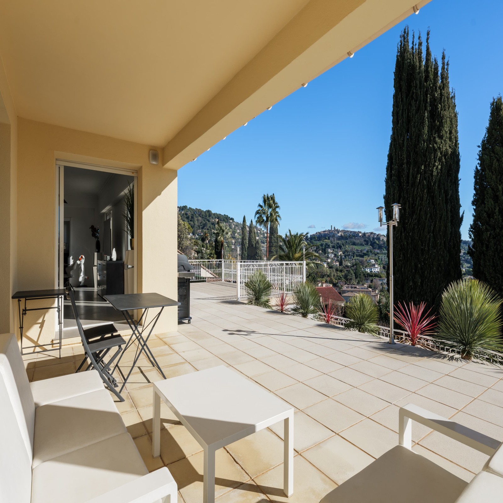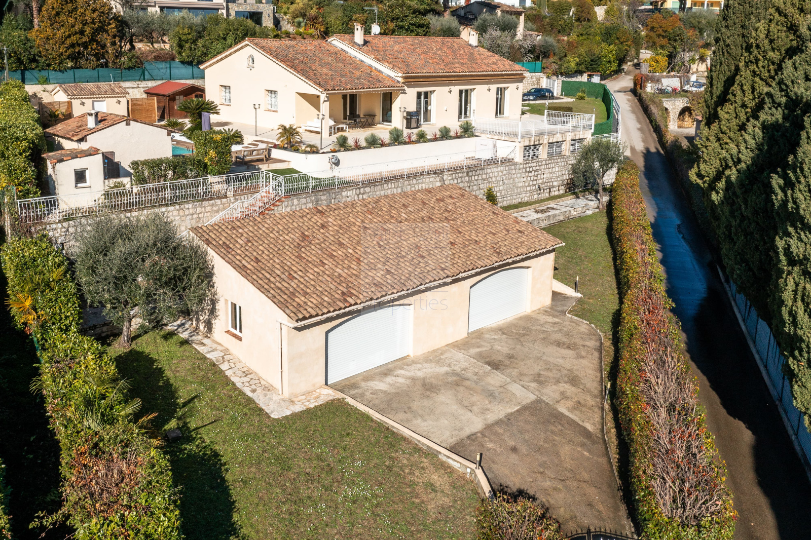 En position dominante bénéficiant d’une belle vue dégagée en Sud sur la vallée et le village de Saint Paul de Vence, magnifique villa 4 pièces de 192 m² entièrement rénovée.