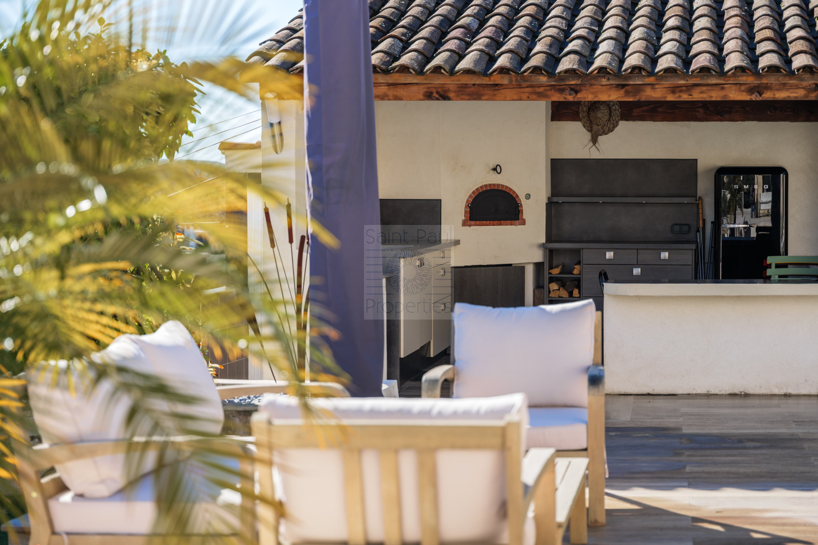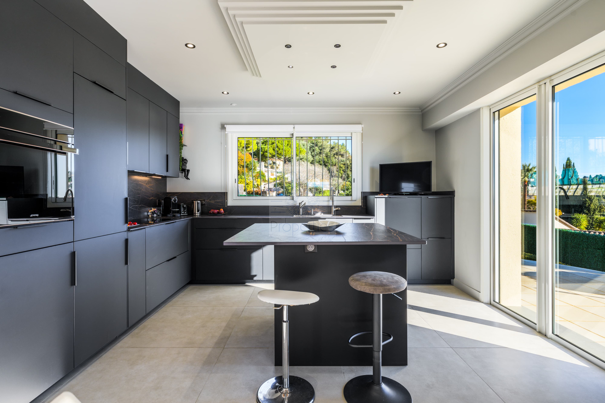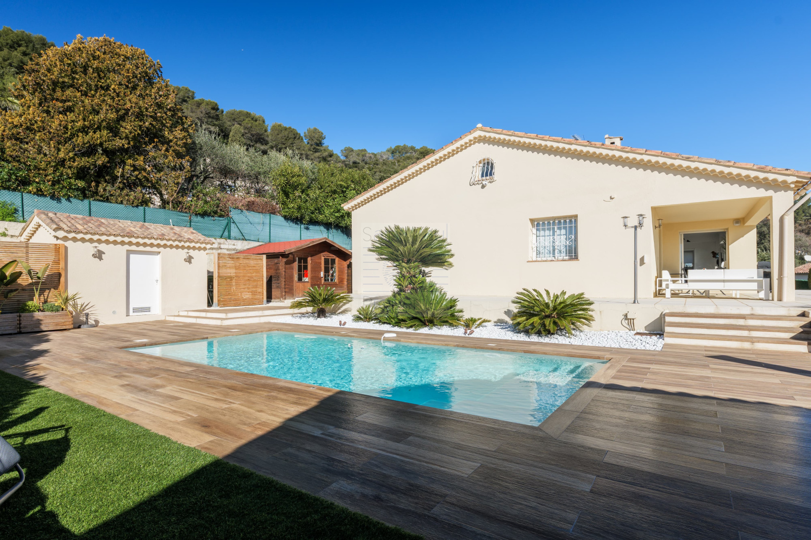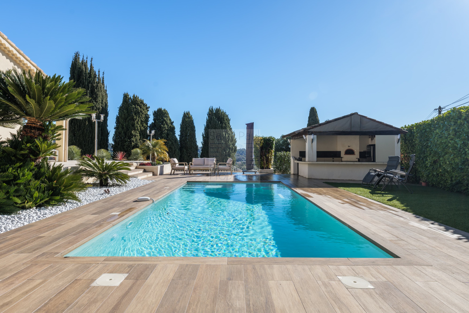 En position dominante bénéficiant d’une belle vue dégagée en Sud sur la vallée et le village de Saint Paul de Vence, magnifique villa 4 pièces de 192 m² entièrement rénovée.
