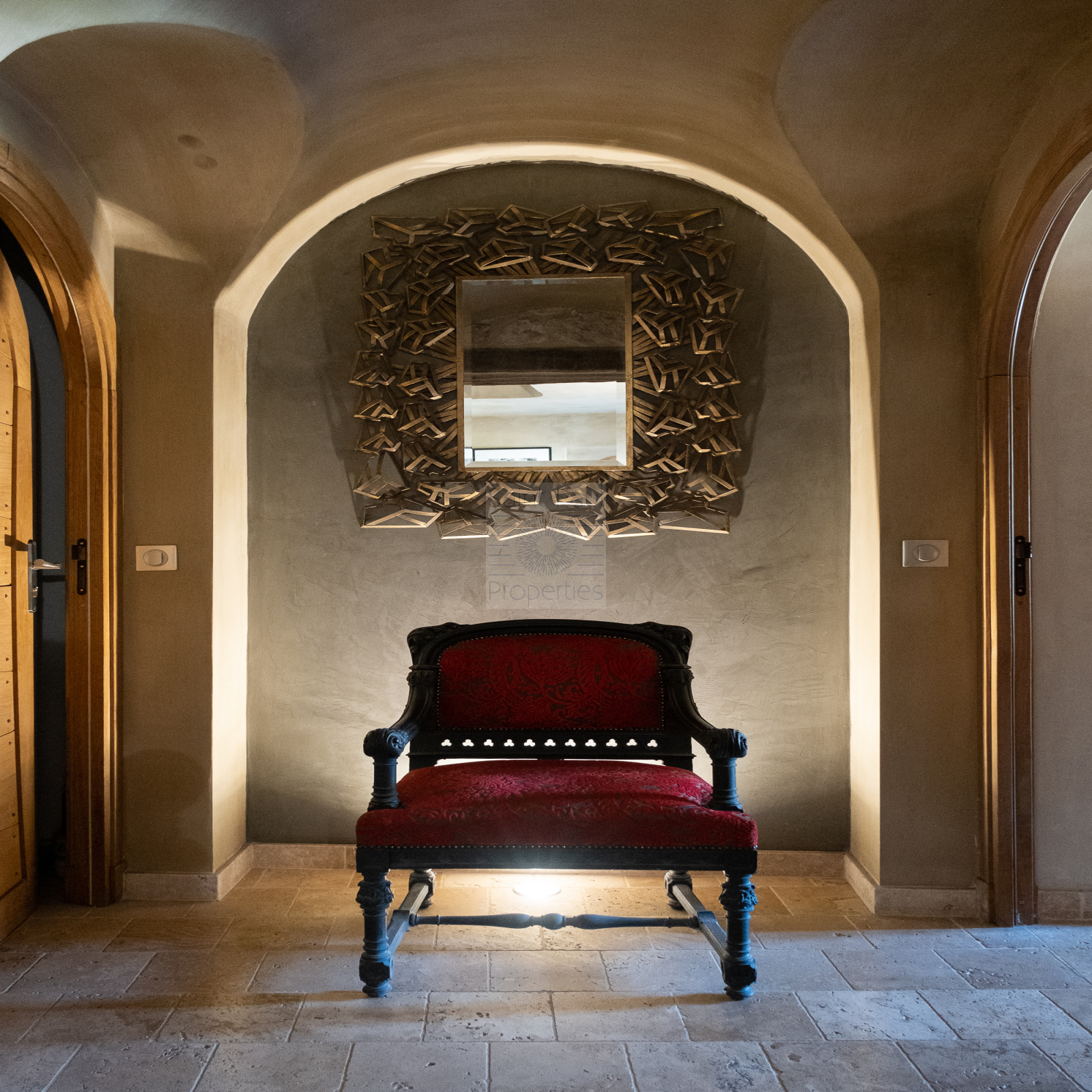 La qualité de prestations de cette propriété est saisissante : matériaux haut de gamme, pompe à chaleur, chauffage et refroidissement par le sol, aspiration centralisée, double vitrage, 5 parkings, piscine couloir de nage, cour pavée.
