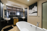 Au 1er étage, 2 chambres en suite dont une majestueuse suite propriétaire agrémentée d’un très profond dressing et une spectaculaire salle de bains ornée d’une jolie verrière.