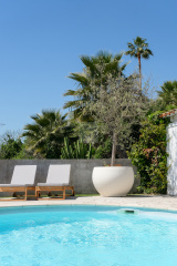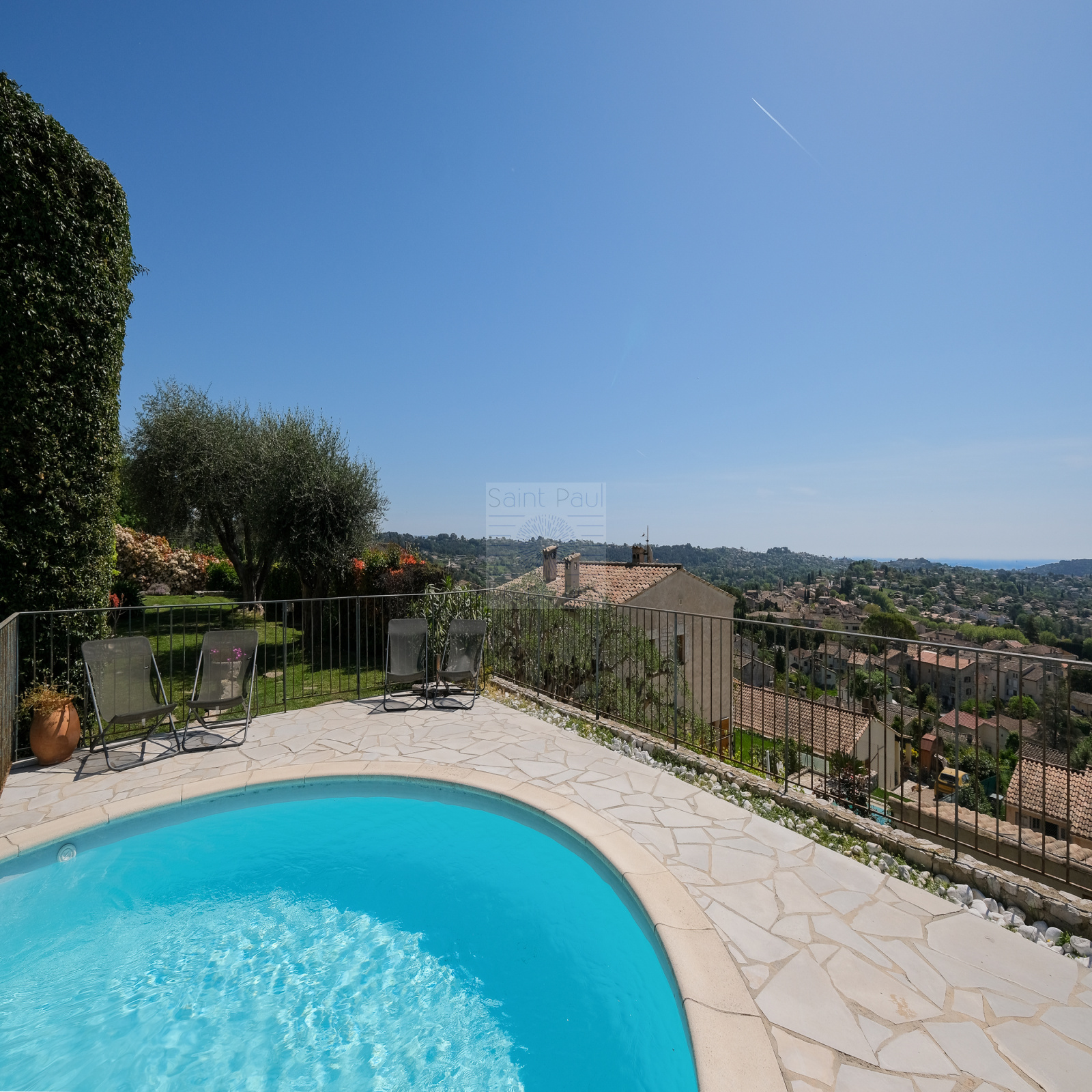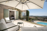 A l'extérieur : Ravissante piscine bénéficiant d'une vue imprenable, d'agréables espaces où il fait bon vivre, de superbes murs en pierre sèche rajoutent un charme tout particulier... Un grand garage indépendant vient compléter l'ensemble.