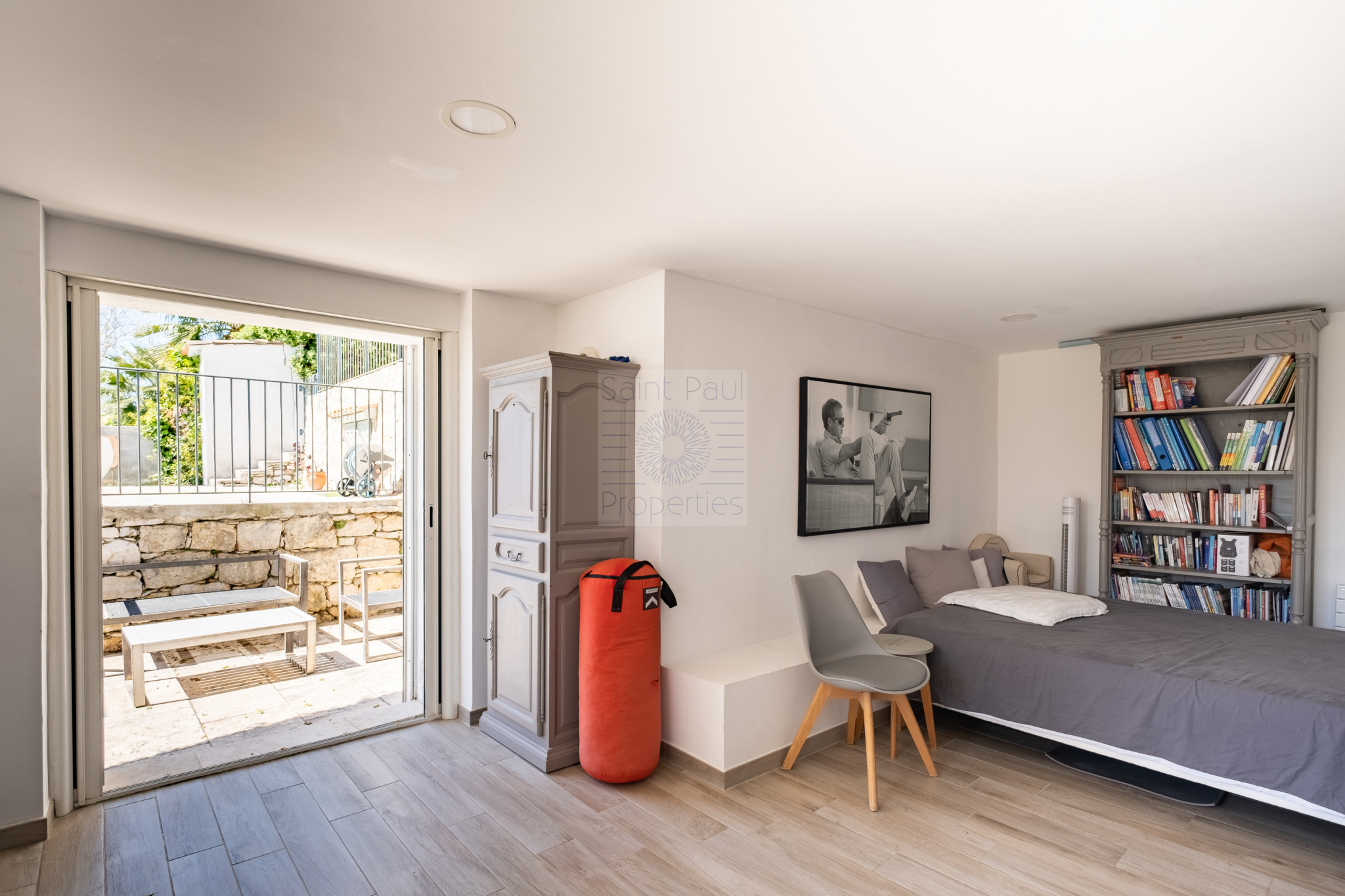 Demi-palier inférieur : une chambre en suite aux volumes généreux + dressing, idéale studio avec accès possible par l'extérieur, une grande buanderie, une cave.