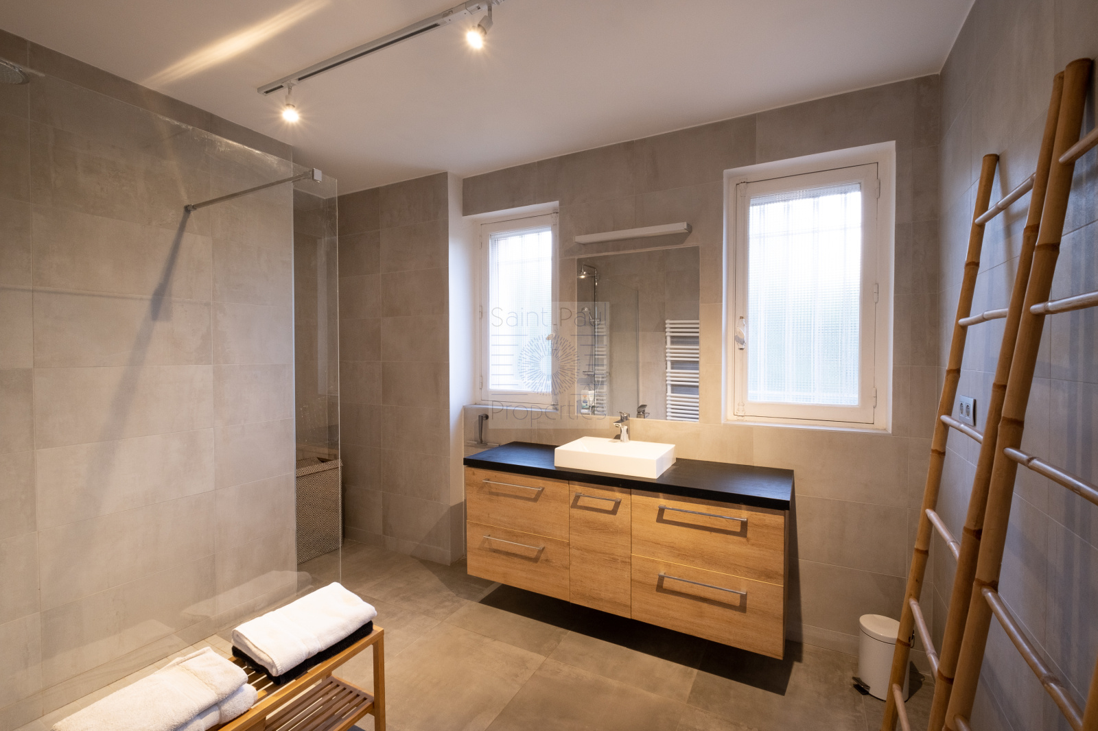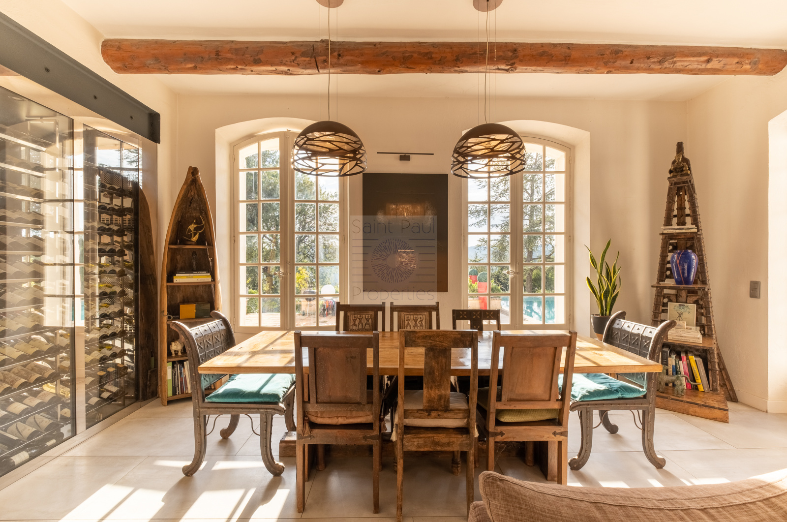 Niveau principal: une majestueuse entrée ouvrant sur une vaste cuisine parfaitement équipée proposant une superbe cave à vins en transparence, un beau séjour avec cheminée, l'ensemble très lumineux grâce à de grandes ouvertures donnant sur une généreuse terrasse; au même étage on retrouve la chambre de maître avec sa salle de bains ( douche à l'italienne), et dressing en suite.