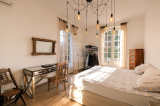 A l'étage, l'espace nuit composé de 5 chambres aux ambiances variées, 2 belles salles de bain, et un immense bureau, pièce maîtresse de l'étage.