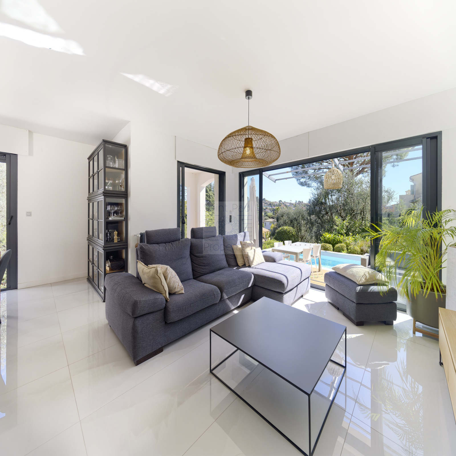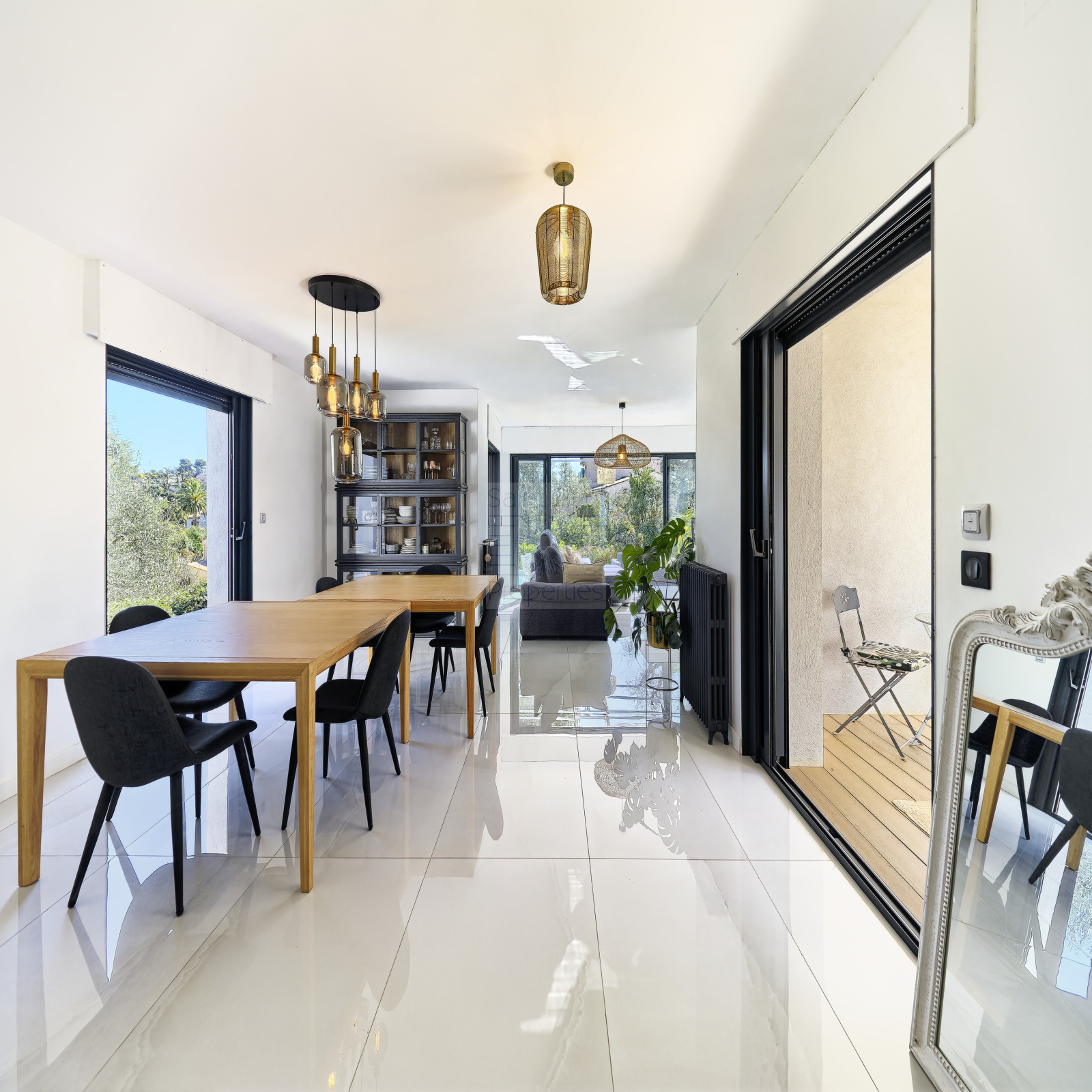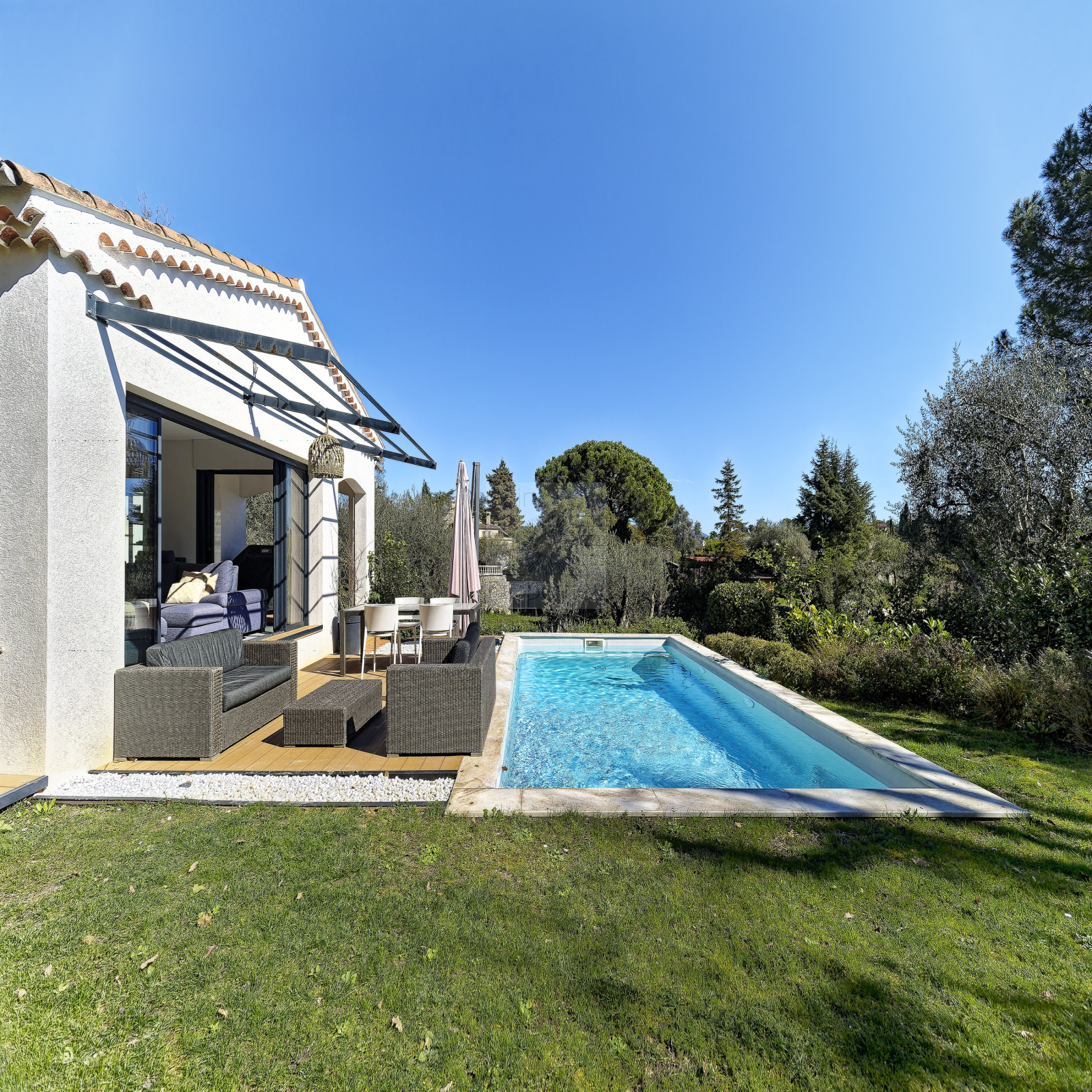 Idéalement située au Sud de Vence, proche des axes routiers, au calme absolu, cette superbe villa vous séduira par la qualité de sa rénovation (2023/2024), ses volumes très agréables et sa luminosité.