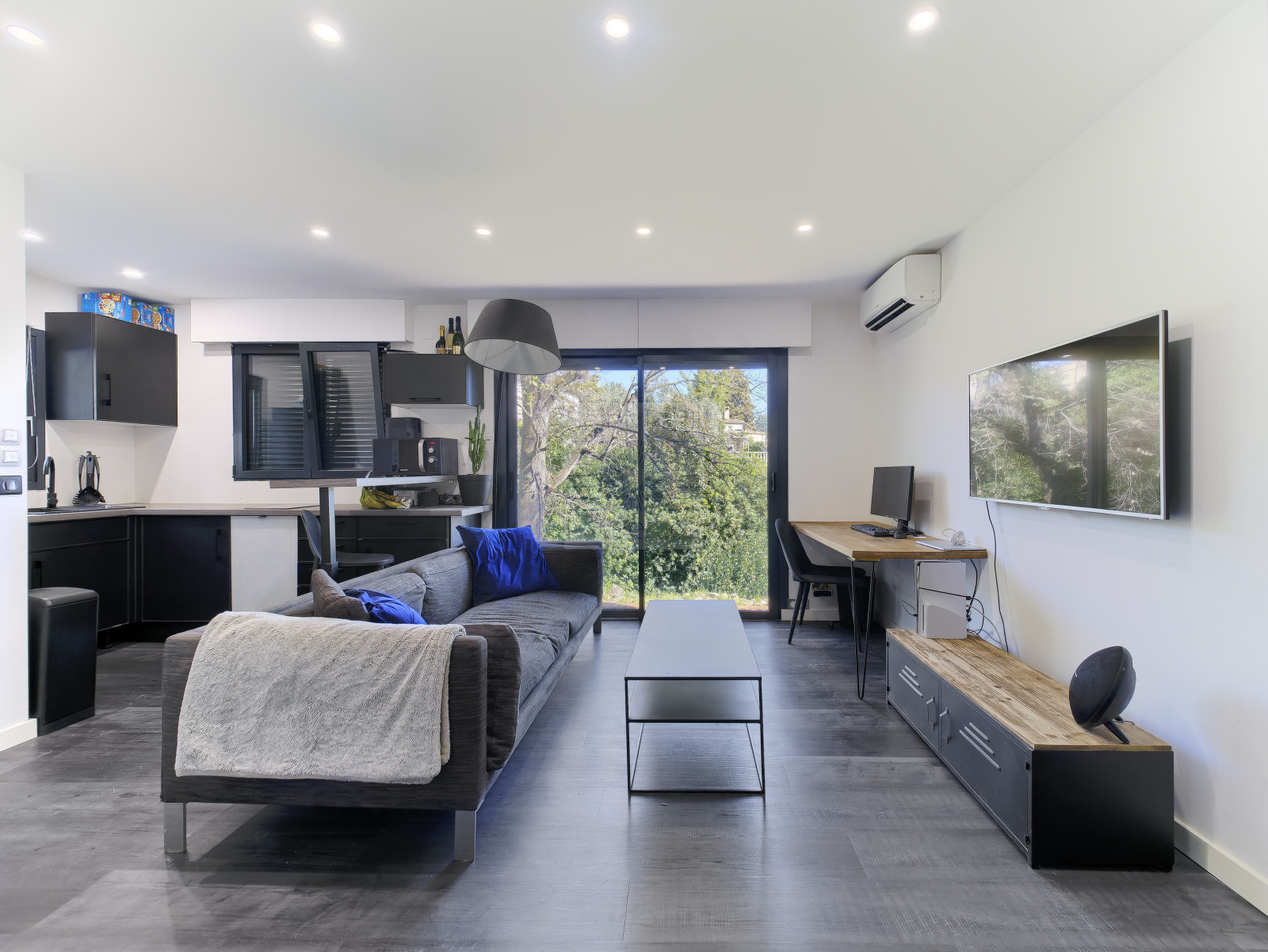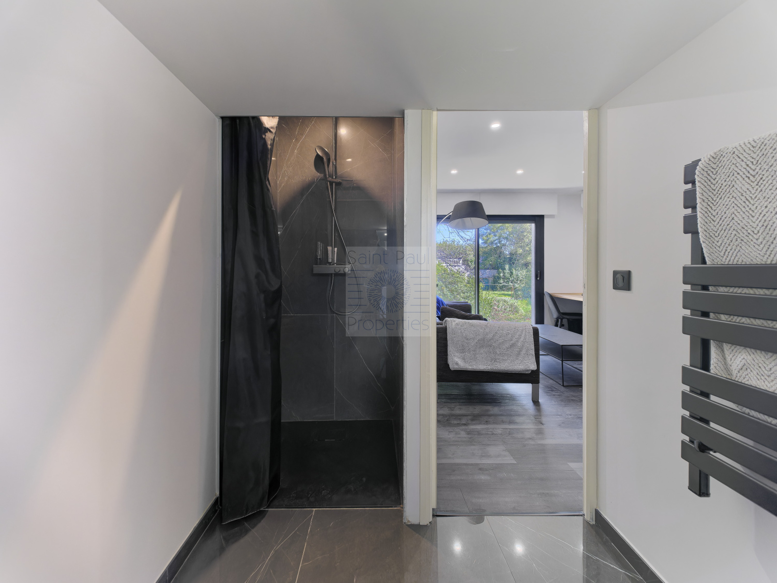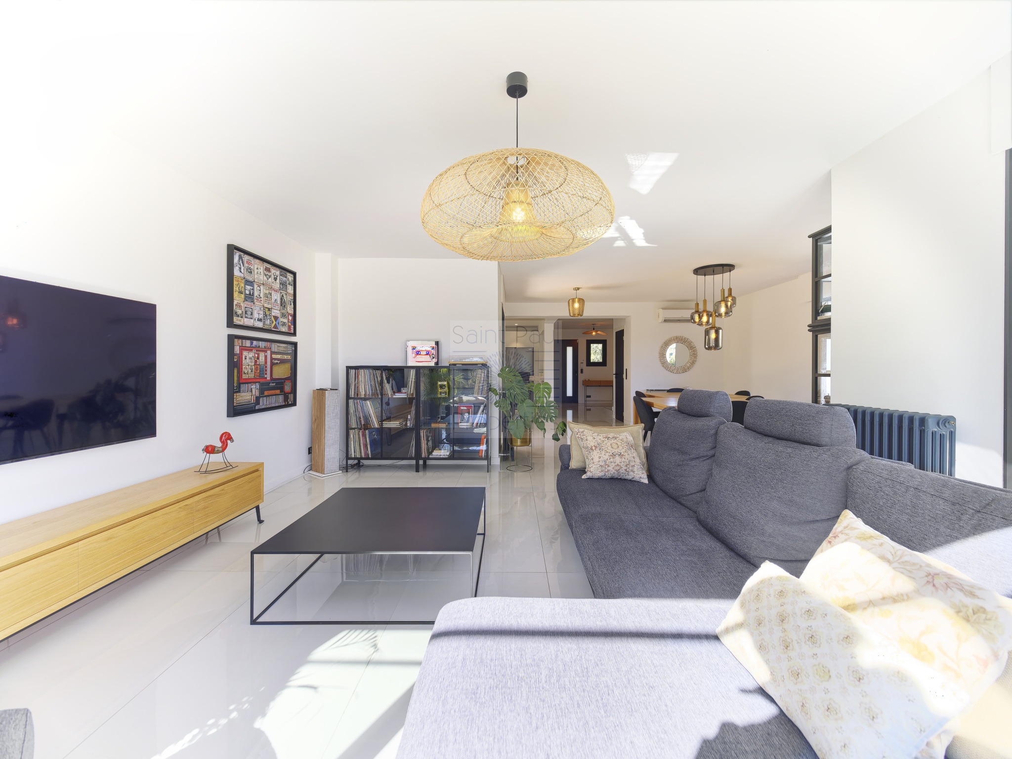 Idéalement située au Sud de Vence, proche des axes routiers, au calme absolu, cette superbe villa vous séduira par la qualité de sa rénovation (2023/2024), ses volumes très agréables et sa luminosité.