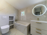 A l'étage: un très bel espace avec cheminée, idéal pour un bureau, une bibliothèque ou pourquoi pas une chambre supplémentaire, 2 chambres, une salle de bain, un dressing.