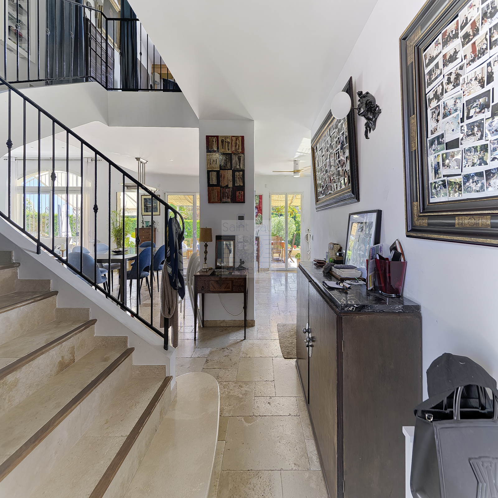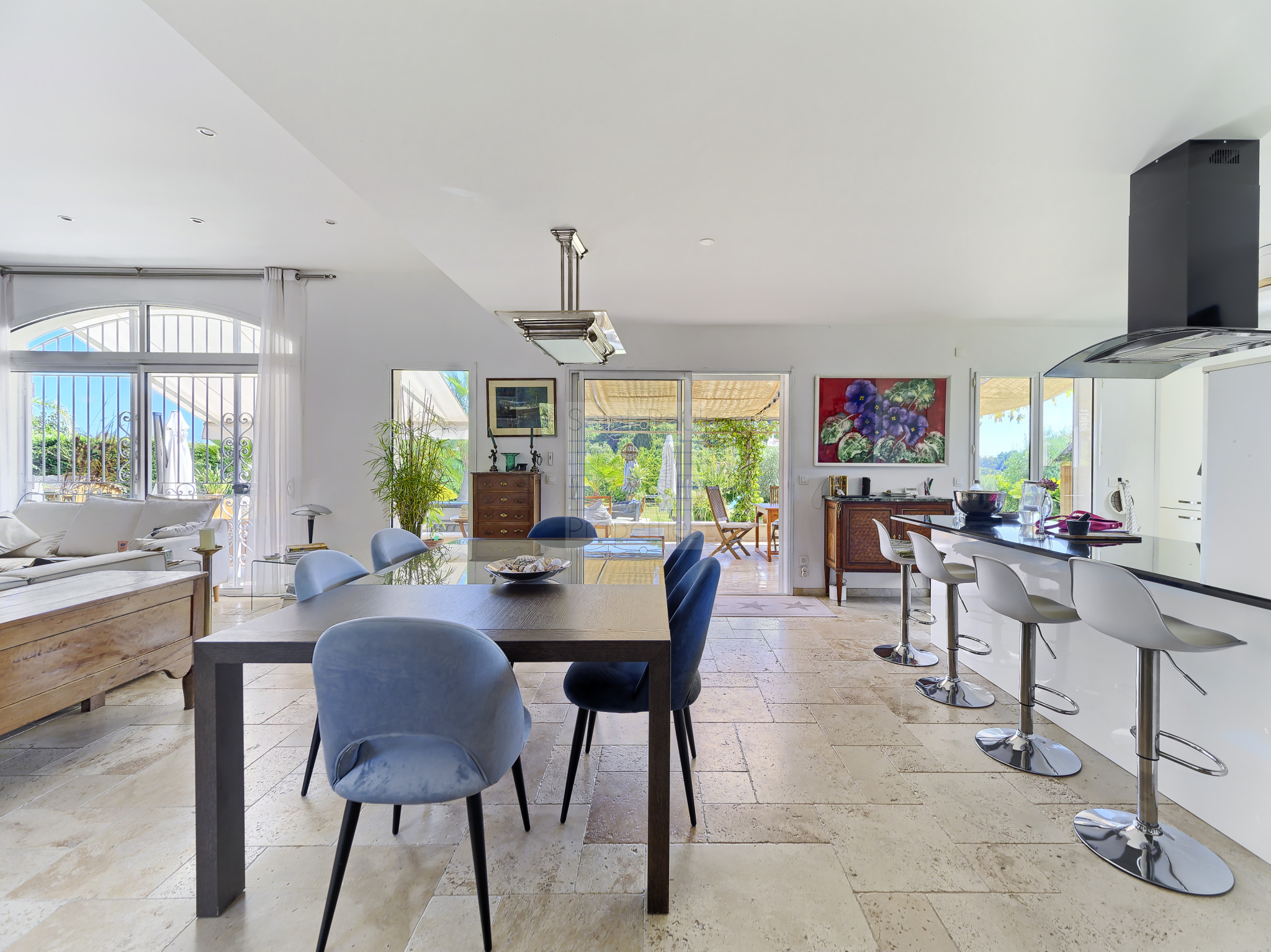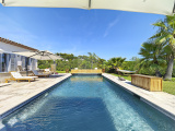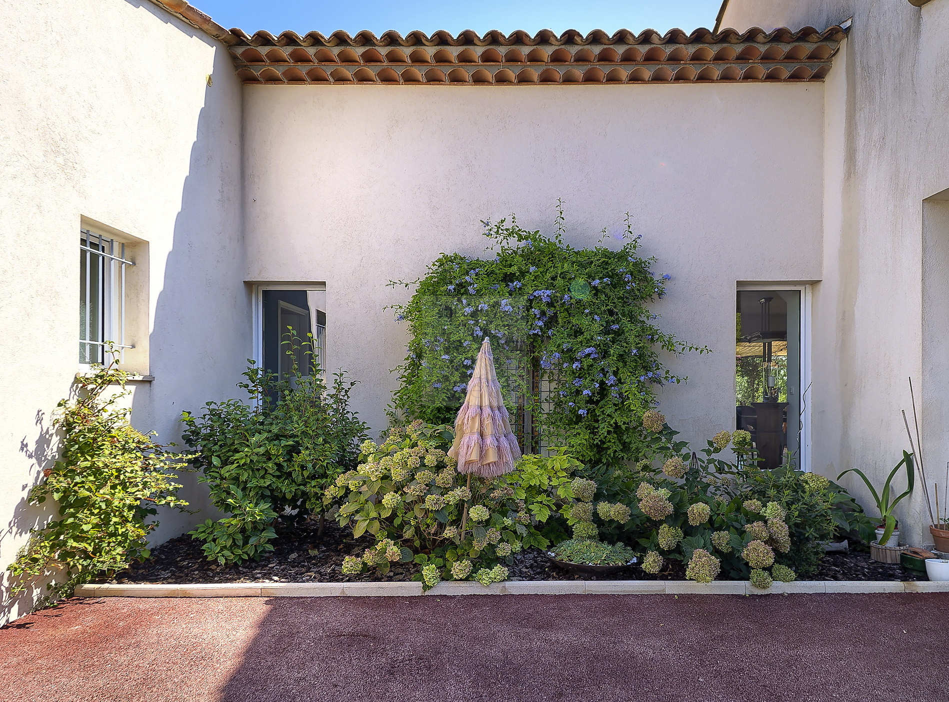 Dés l'arrivée, le vaste jardin plat et arboré d'environ 2500 m2, soigneusement entretenu, crée une atmosphère sereine et apaisante. La piscine chauffée (Diffazur) s’intègre harmonieusement au décor et s’accompagne d’une grande terrasse d'environ 90 m2 exposée plein Sud.