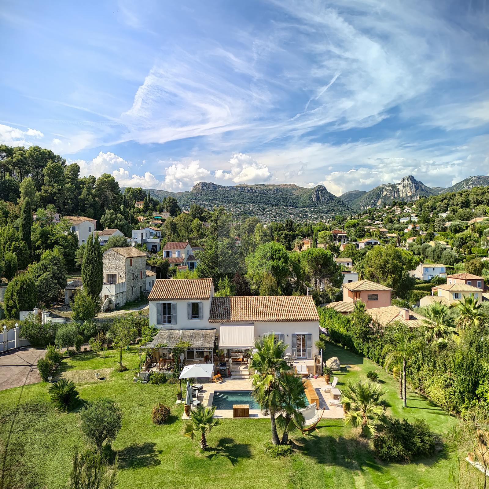 Située dans un environnement CALME et VERDOYANT, proche de Vence et de l'aéroport, cette jolie villa clé-en-main combine charme provençal (tuiles, poutres apparentes en bois clair,...) et confort moderne.