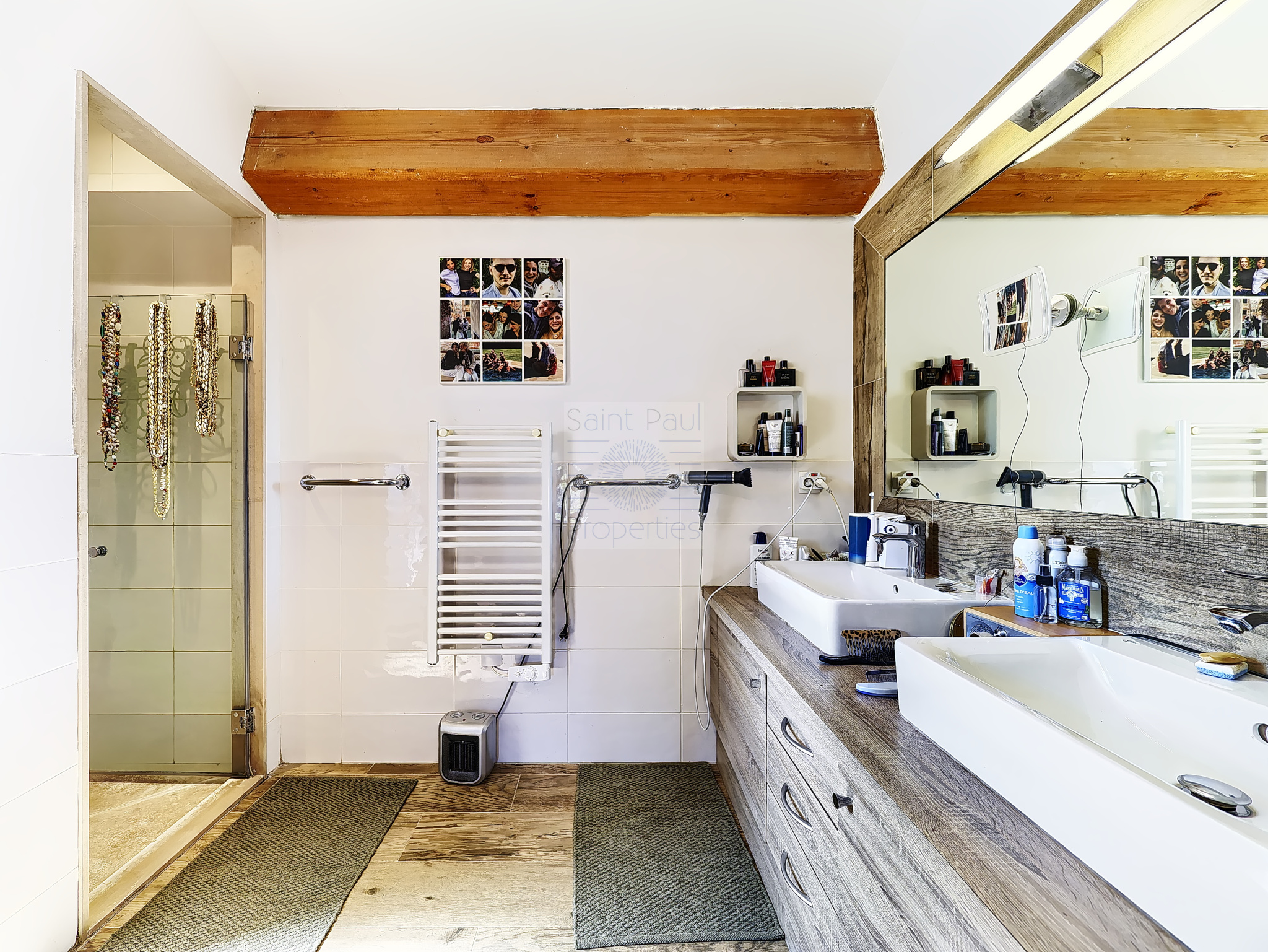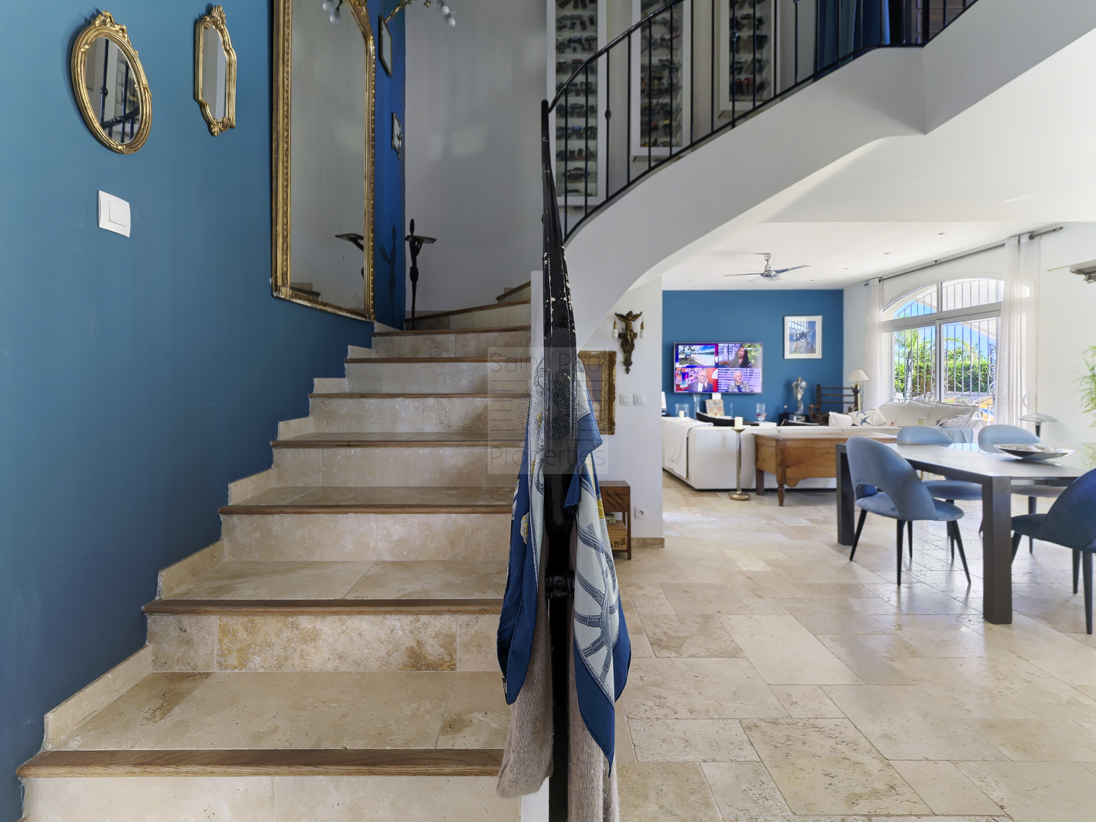 Cette maison offre de belles prestations: buanderie/arrière-cuisine, double garage, un abri voiture, chauffage au sol (réversible), climatisation, stores électriques centralisés, volets en aluminium, jardin entièrement clôturé, double vitrage, arrosage automatique, terrain de pétanque, portail électrique, panneaux photovoltaïques, volet piscine en aluminium.