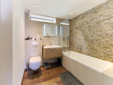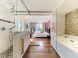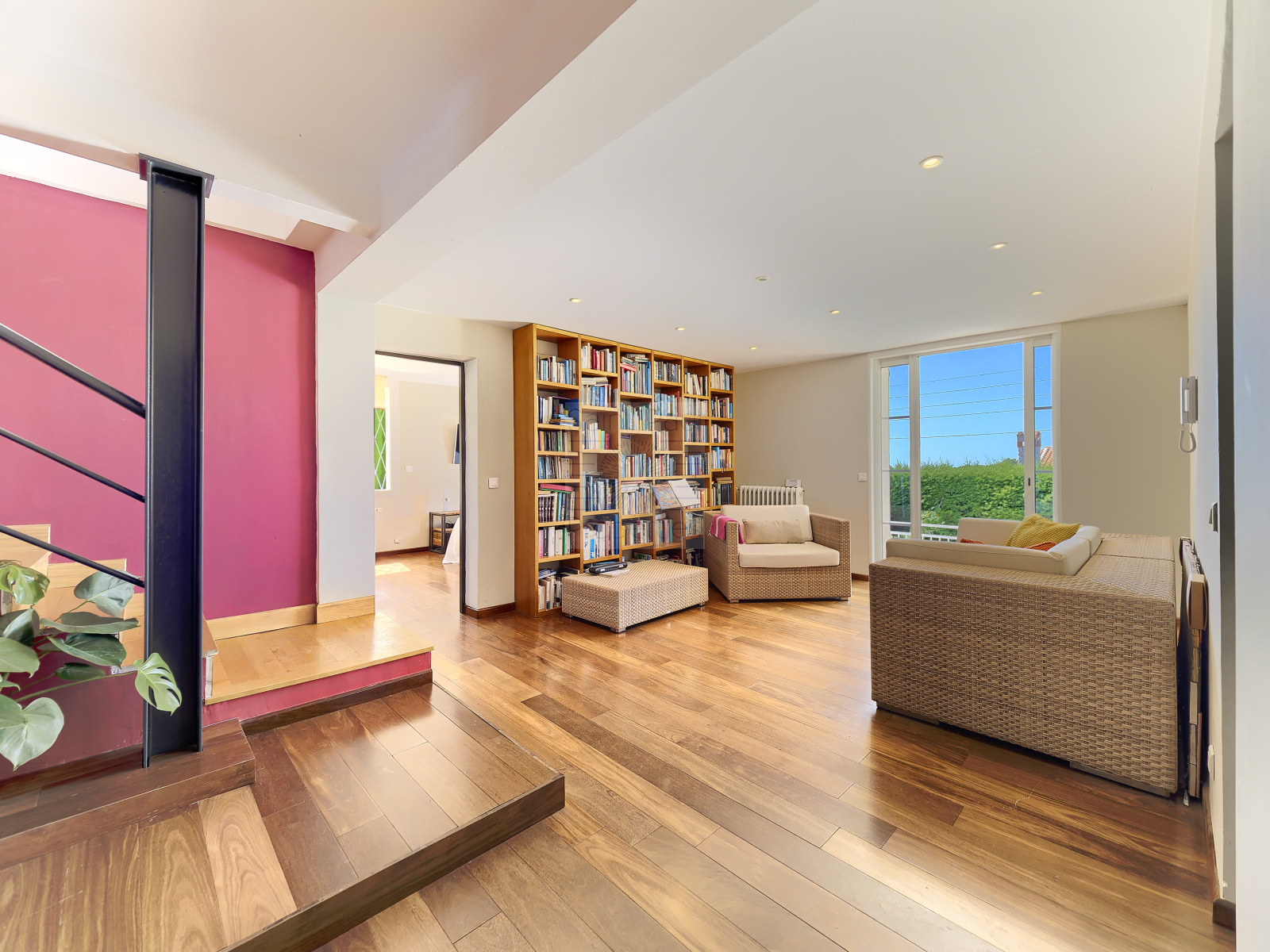 Niveau inférieur: un espace cosy salon/bureau, deux chambres avec placards et chacune sa salle de bain, la chambre parentale avec sa salle de bain ( baignoire & douche) et son dressing. Une buanderie, une cave.