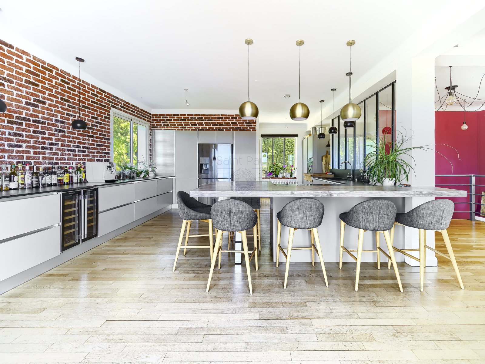 Niveau principal: une belle entrée desservant un spacieux séjour et une immense cuisine américaine parfaitement équipée, l'ensemble ouvrant sur une terrasse proposant une très belle vue... Une chambre également et une salle de douche se trouvent à ce niveau
