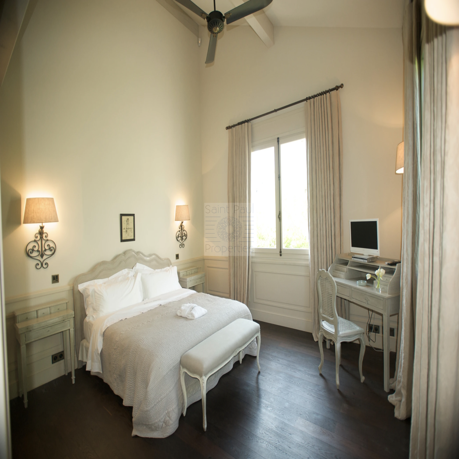 L'âme de ce lieu privilégié vous transporte dans le romantisme des somptueuses roseraies agrémentées de fontaines dans des jardins à la française, potager, oliviers centenaires, piscine chauffée, terrasse ombragées de Glycine l'été, tennis, maison de gardien, double entrée pour le personnel de service.