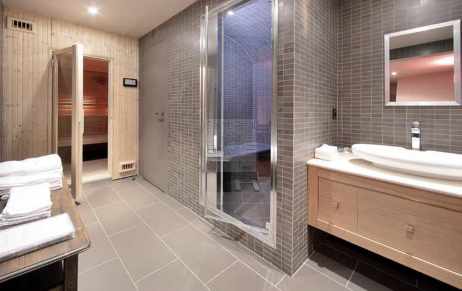 Magnifiques salons avec cheminées, chambres familiales pour 4 personnes, suite vue mer à l'étage, sous-sol avec salle de cinéma, un sauna, hamam, salle de fitness entièrement équipée, cave à vin, buanderie professionnelle conçue pour acceuillir les grandes familles.