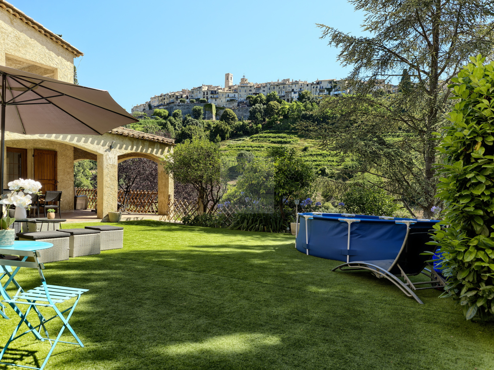 On retrouve également une cave / buanderie. A l'extérieur, toutes les pièces à vivre ouvrent sur un charmant jardin privatif d'environ 100m2 et ses terrasses couvertes, permettant de profiter pleinement d'une superbe vue sur le village de Saint-Paul de Vence.