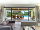 Une belle terrasse couverte permet de benéficier d'un espace de vie extérieur supplémentaire avec une piscine en plage. Le jardin s'étend de facon circulaire autour de la maison, villa parfaitement entretenue, prête à vivre.