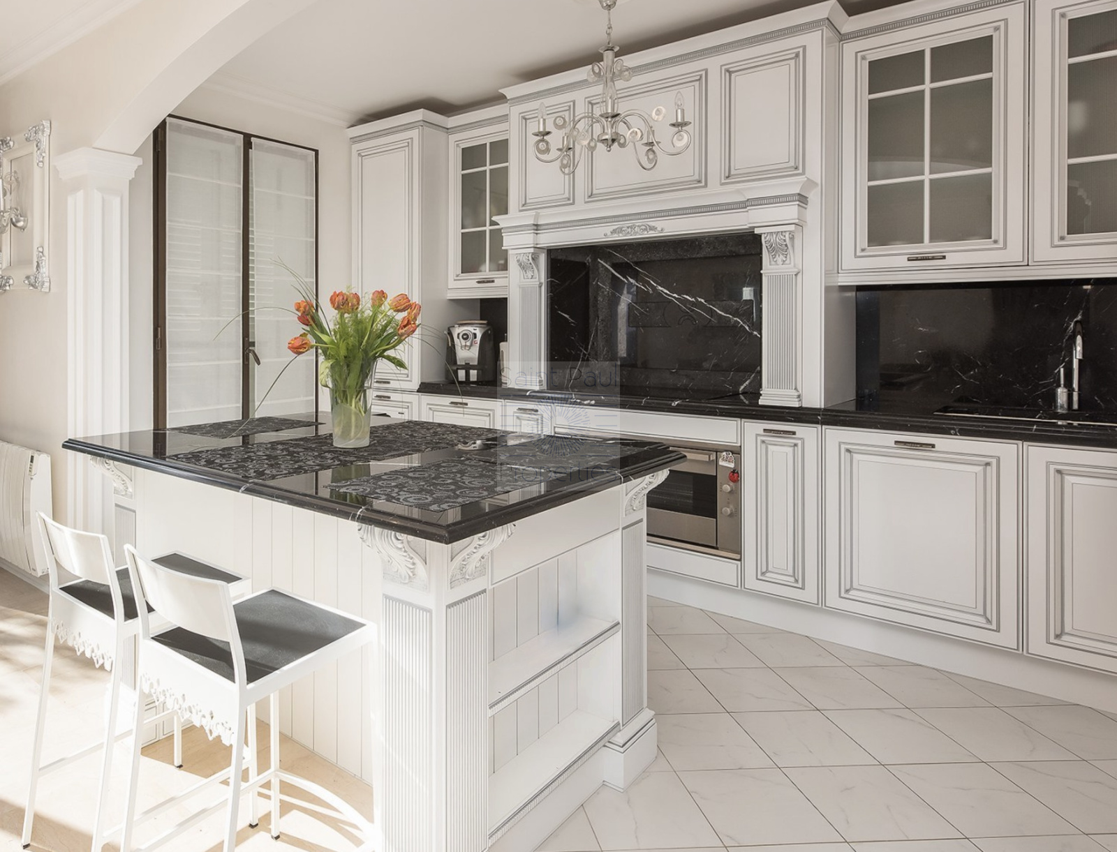 la maison se compose d'un salon, d'une salle à manger et d'une cuisine de luxe américaine, donnant sur la terrase et le jardin.