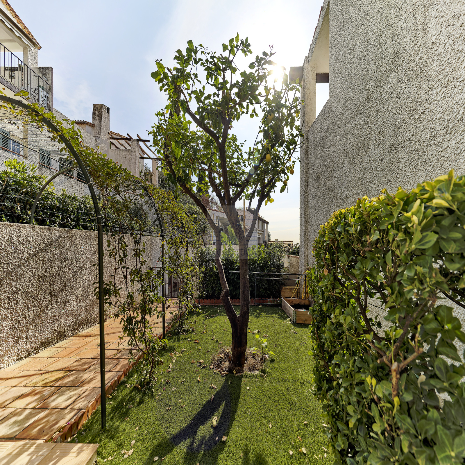 Discrètement jumelée dans une copropriété et entièrement rénovée, cette maison se decouvre comme suit :