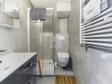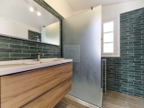 Une large entrée avec placards, deux chambres avec leur salle de bains et Wc, une buanderie et un bureau.