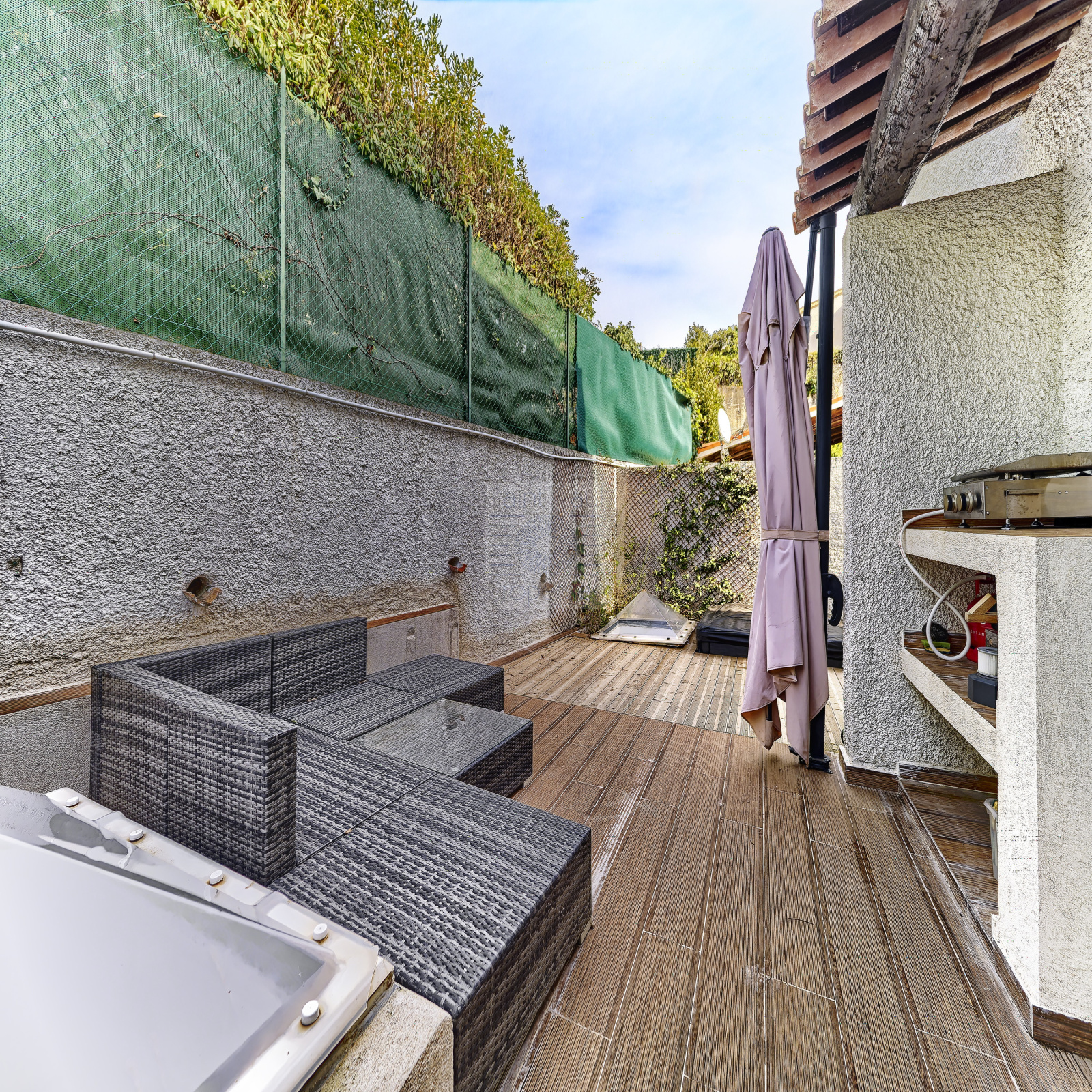 Discrètement jumelée dans une copropriété et entièrement rénovée, cette maison se decouvre comme suit :
